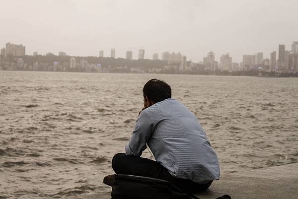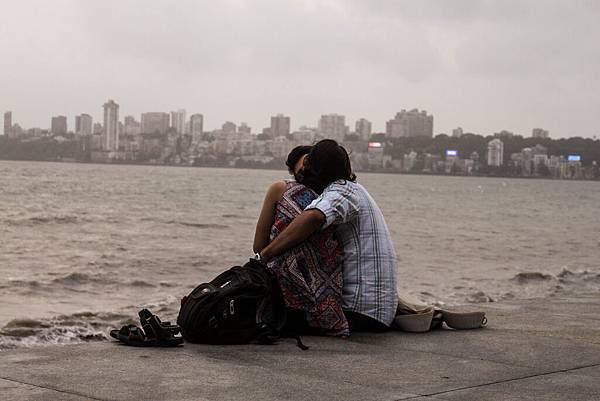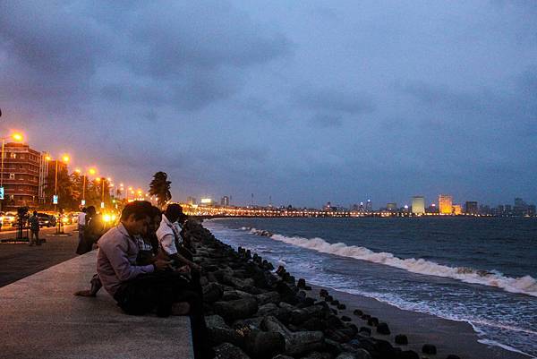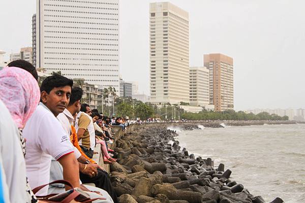 海濱大道的堤防上坐滿了一個個孟買居民與遊客,有些人心事重重;有些人激情擁吻。